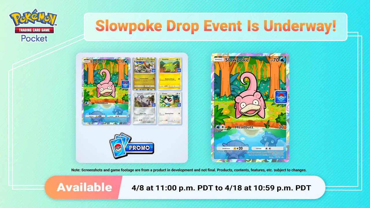 Allenatori e Allenatrici, preparatevi! Su GCC Pokémon Pocket è ufficialmente iniziato l’evento bonus dedicato a Slowpoke, attivo dalle ore 08:00 del 9 aprile fino alle ore 07:59 del 19 aprile 2026.