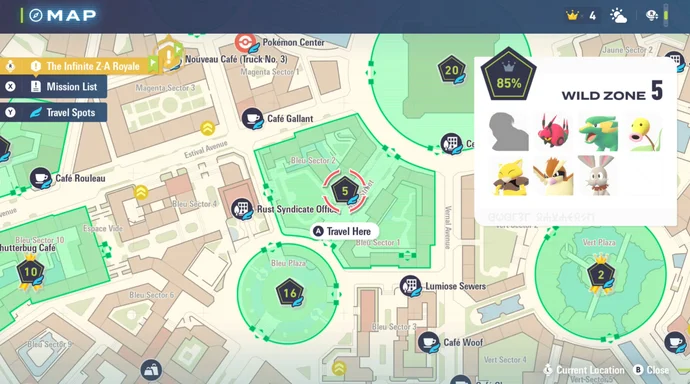 Le zone selvagge sono il luogo principale dove catturerai la maggior parte dei tuoi Pokémon in Leggende Pokémon: Z-A. Ogni zona selvaggia ha il suo set unico di Pokémon, alcuni visibili solo di giorno e altri solo di notte. Attenzione anche agli Alpha Pokémon, che sono più rari e potenti!