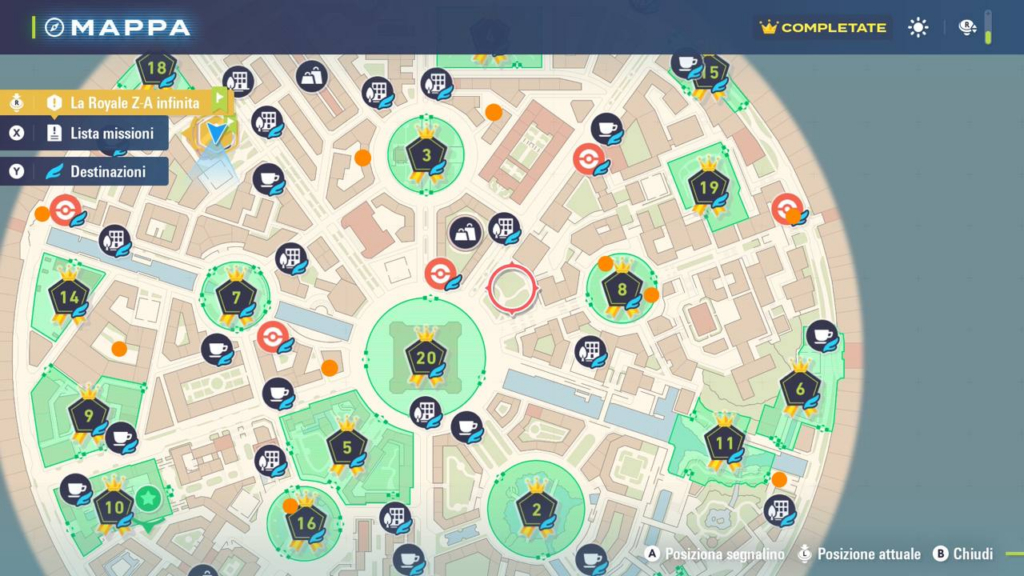Per acquistare le bacche devi recarti in alcune zone specifiche di Luminopoli, principalmente a sinistra della Zona Selvaggia numero 3. Ho analizzato la mappa e segnato tutti i punti dove le bacche sono disponibili: sono evidenziati con un cerchio arancione nella foto in alto.