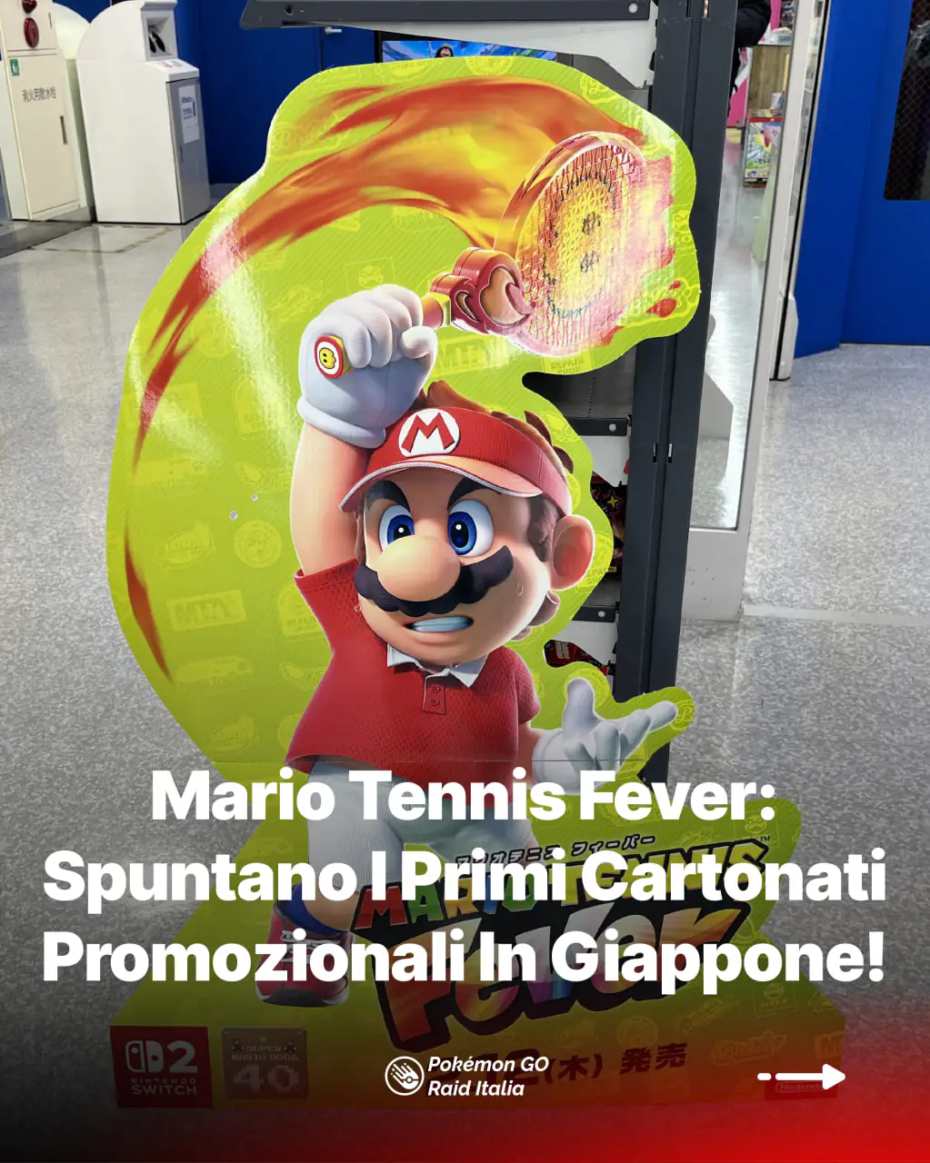 Le installazioni, già avvistate in diversi store nipponici, raffigurano Mario, Yoshi e Rosalinda, protagonisti assoluti della campagna marketing iniziale. I personaggi sono mostrati in pose dinamiche, pronti a scendere in campo, con una grafica colorata e accattivante che mette subito in risalto l’anima arcade del nuovo capitolo.