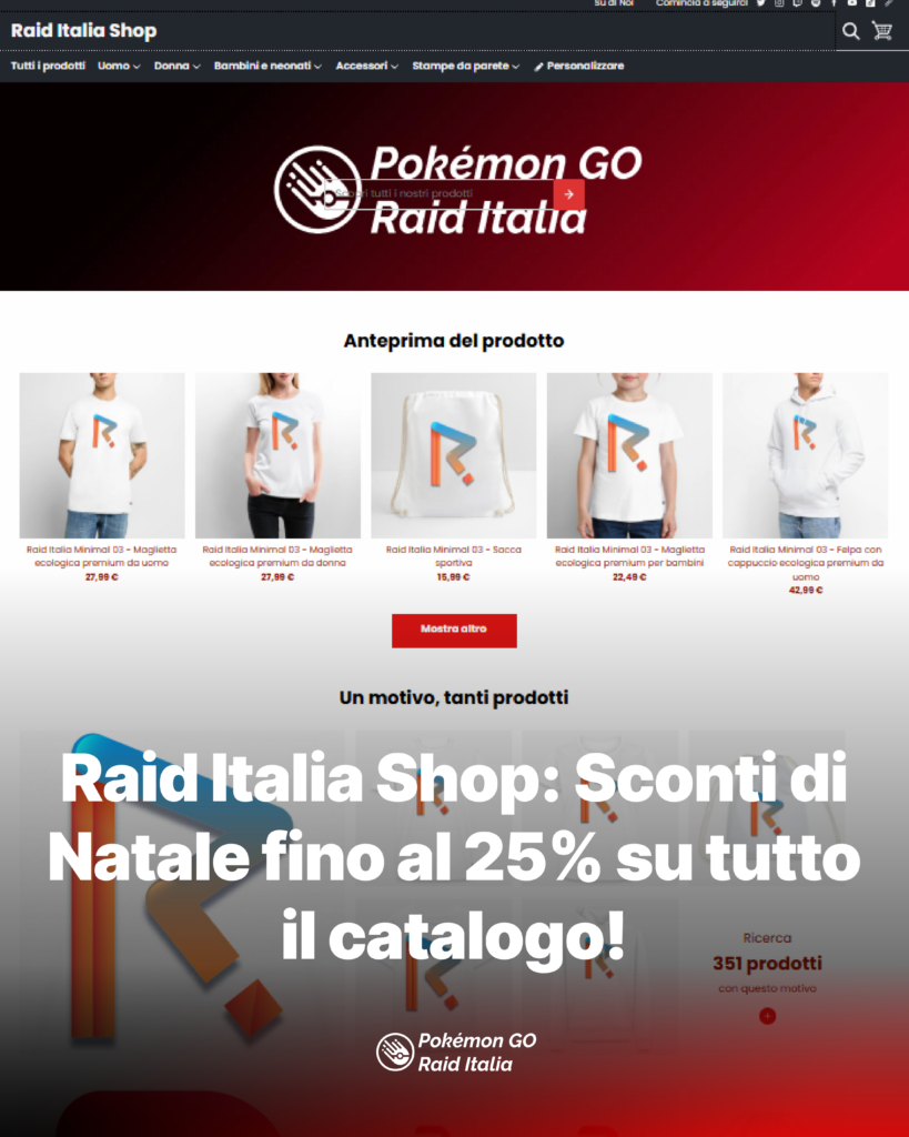 Un’occasione imperdibile per risparmiare durante le festività e supportare la community di Pokémon Go Raid Italia, restando sempre aggiornati su novità, offerte e iniziative dedicate agli Allenatori.
